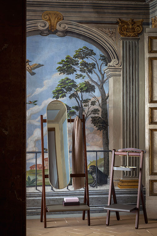 Ren은 Neri & Hu가 디자인한 가구 시리즈입니다. 생활하는 데에 있어서 편리함을 줄 수 있는 가구들을 제작했으며 시리즈 전부 두 개의 면으로 구성되어 견고한 구조를 가지고 있습니다. 그 중에서 Ren Side Table은 월넛 우드와 자작 나무로 제작된 둥근 선반과, 안장 가죽을 씌운 놋쇠 프레임으로 구성되어 있습니다. 이 제품은 다른 Ren 제품들과도 어우러지고, 단독으로도 우아함을 자아내는 제품입니다.