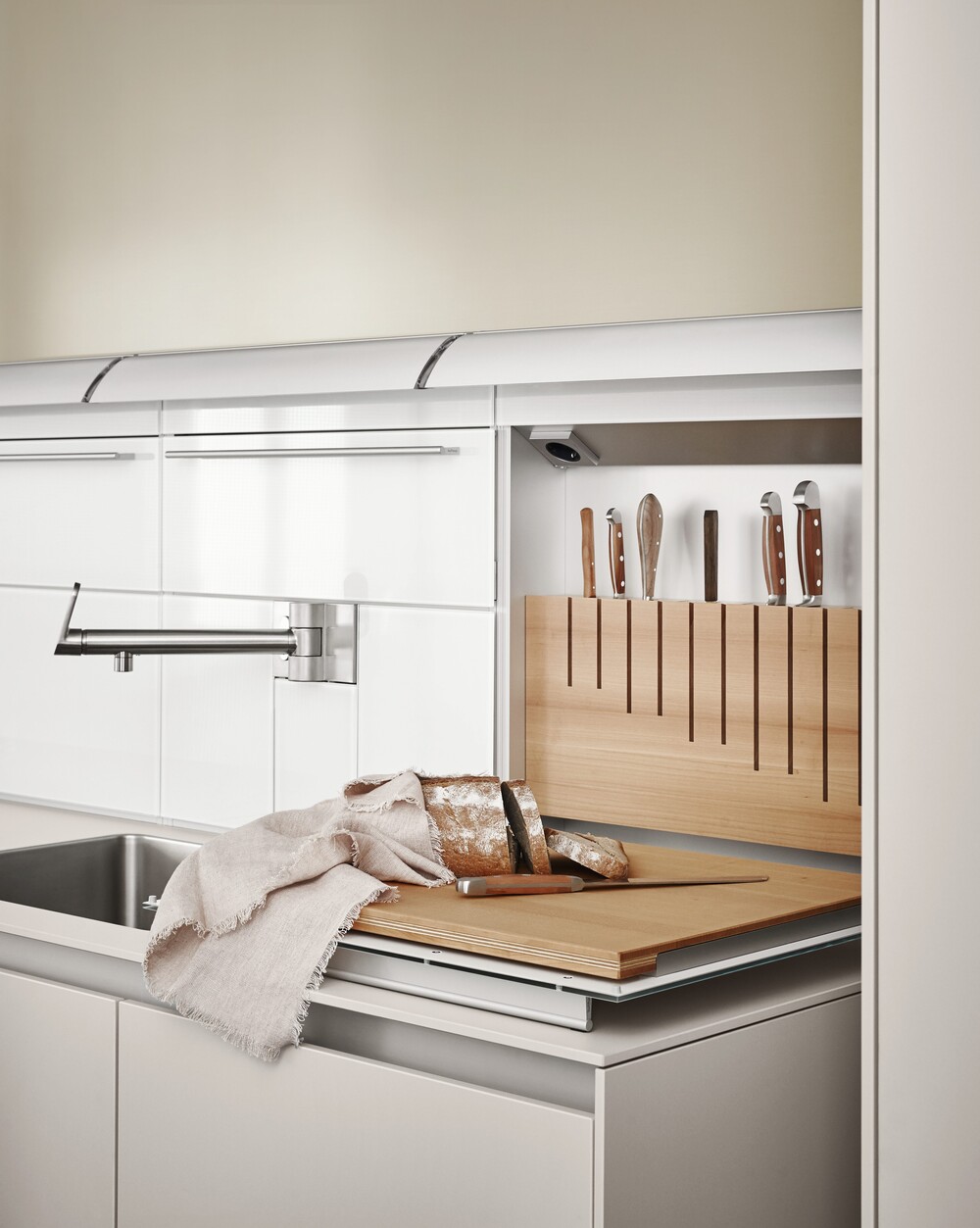 b3는 다양한 변수를 제공해 열린 공간을 만들어낸다.주방을 즐겁게 사용하기 위해서는 주방이 사용자만큼이나 다재다능해야한다.b3 주방의 가장 큰 특징은 다기능벽(Multi-function wall)이라는 모든 주방 요소를 벽에 걸 수 있는 기능이다. 주방 전체가 떠 있는 듯한 느낌은 플로팅 타입이 아닌 다릿발 타입, 스탠드 타입에도 동일하게 느낄 수 있다.