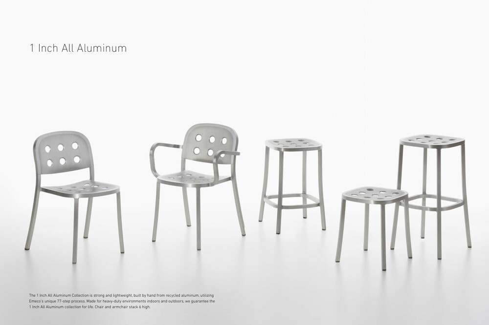 For the 1 Inch Collection, Jasper Morrison tapped into Emeco’s heritage in hand crafting recycled aluminum, and leveraged its signature strength, light weight, and sustainability. Emeco and Jasper Morrison together have created a collection that reflects our values and uncompromising standards - a seating family that is strong, simple, timeless, and engineered to last.
