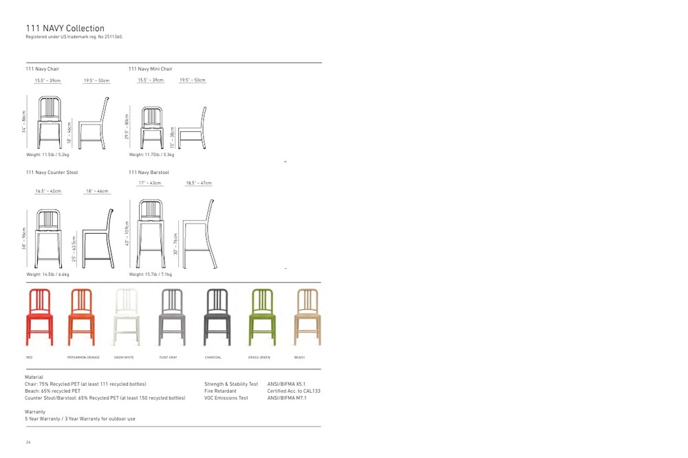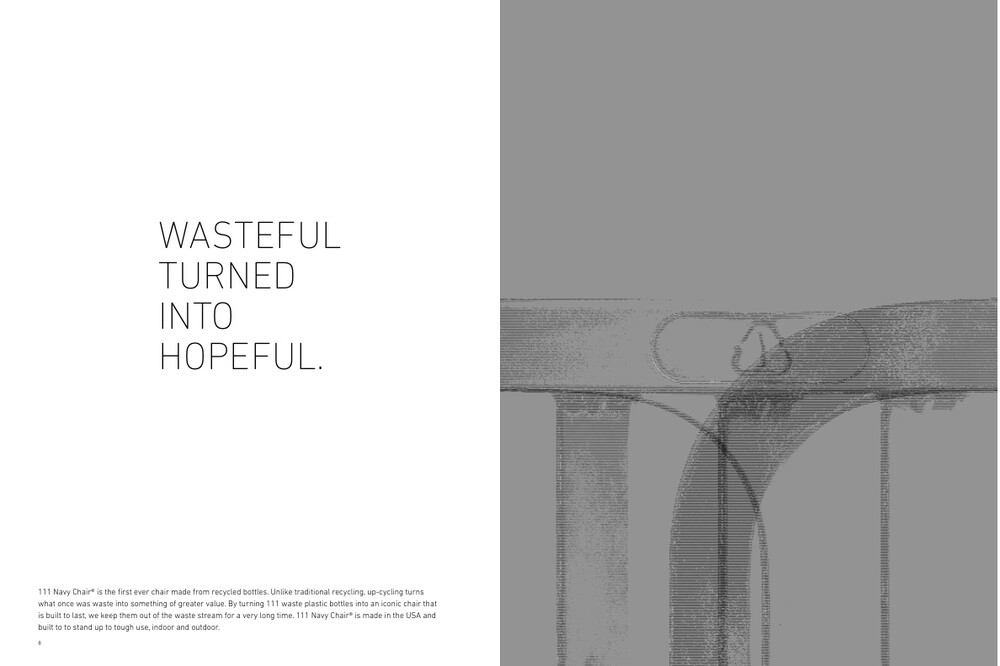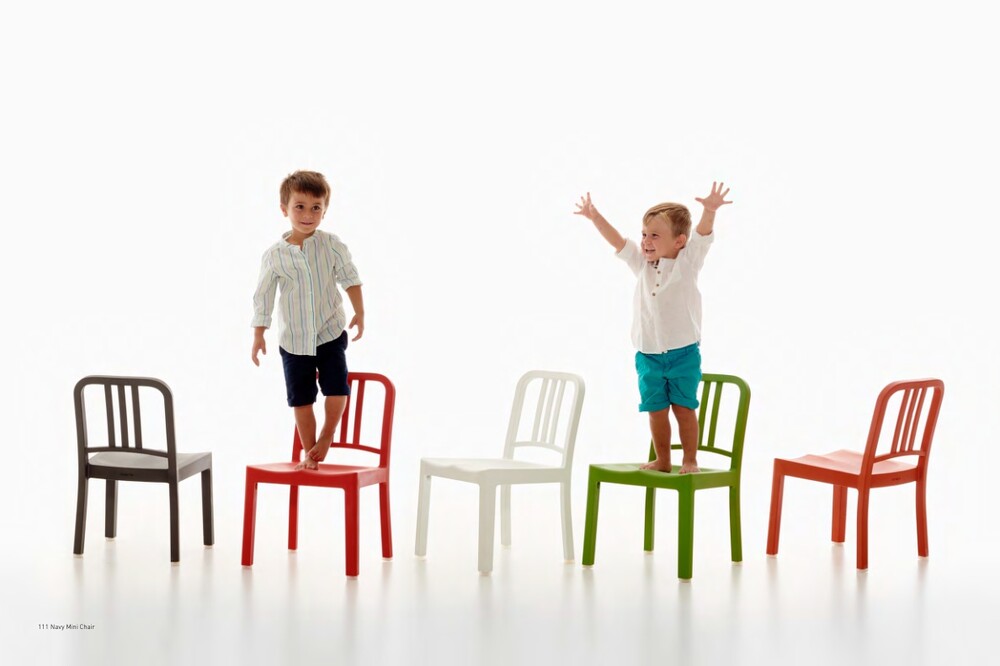 The 111 Navy Mini is a story of innovation, turning waste plastic into something that lasts. Each stool is made of 111 recycled PET bottles. Like the original 111 Navy stool, these one-piece chairs are an engineering success - made to stand up to heavy use, and made in the USA.111 Navy Mini, thanks to its lower seat height and smaller back is not only suitable for children but also any lower seating requirements, without compromising the comfort of a regular chair thanks to its generous seat.